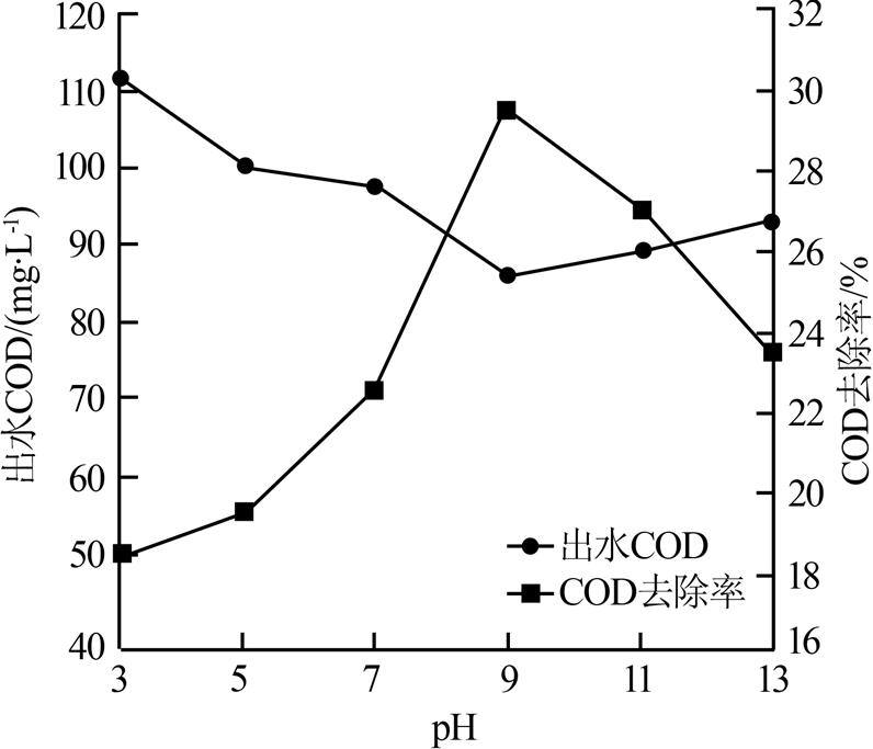 ¡¡¡¡2.1.4 ÔË®pH¶ÔCODÈ¥³ýÂʵÄÓ°Ïì