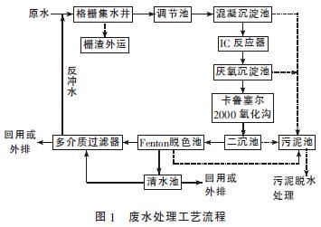 因此,本工程选择采用混凝沉淀-IC 厌氧反应器-卡鲁塞尔2000 氧化沟-Fenton 氧化组合工艺处理企业废水。