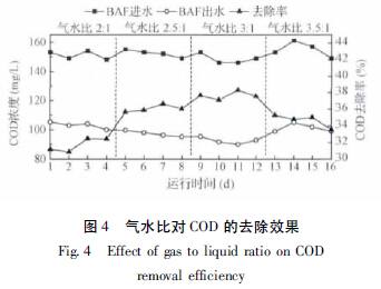 2. 2. 2 气水比对BAF 去除COD 的影响