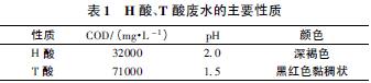 H 酸(1-氨基-8-萘酚-3,6-二磺酸单钠盐) 是生产直接、酸性、活性染料的重要中间体,其主要用途是合成偶氮染料,染棉、毛、麻、丝纤维用深色染料均需要以H 酸为中间体合成出的染料来取代。T 酸(1-萘胺-3,6,8-三磺酸) 通常由8-硝基-1,3,6-萘三磺酸还原得到,是制备H 酸的前体。H 酸生产废水及T 酸生产废水均属于难处理染料废水,废水COD 分别在30000mg /L 及70000 mg /L 左右,色度深、成分复杂、毒性大、含盐量高、酸性强,不能直接进行生化处理。目前国内外对染料及中间体废水处理主要采用絮凝、吸附、脱色、氧化等物理和生化组合处理技术,处理费用很高。H 酸生产废水及T 酸生产废水可行的处理方法非常少,主要是络合萃取法、重氮偶合及液膜法。