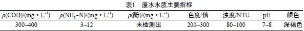 ·Ïˮȡ×Ôij½¹»¯³§Éú»¯´¦ÀíºóµÄ½¹»¯·ÏË®£¬·ÏˮˮÖÊÖ÷ÒªÖ¸±ê¼û±í1¡£