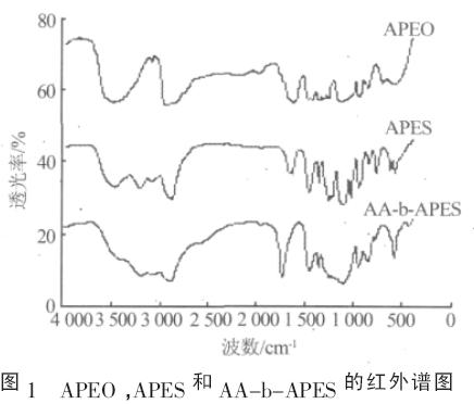 ¡¡¡¡2.1 ºìÍâÐÔÄܱíÕ÷APEO、APES ºÍAA-b-APES µÄºìÍâÆ×ͼ¼ûͼ1。