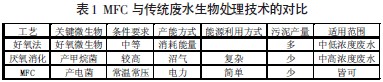 ²ÉÓÃMFC ´¦Àí·ÏË®ÊÇ·ÏË®´¦Àí¼¼ÊõµÄ´´Ð¡£´«Í³·ÏË®´¦Àí¼¼Êõͨ³£½«·ÏË®µ±×÷ÎÞÓõķÏÎÒÔÏûºÄµçÄÜÀ´È¥³ýÕâЩº¬ÄÜÎÛȾÎ¶øMFC¿É½«·ÏË®ÎÛȾÎïÓÃÓÚÉú²úµçÄÜ£¬´¦Àí·ÏË®µÄͬʱÉú²úµçÄÜ[9]¡£Ó봫ͳ·ÏË®ÉúÎï´¦Àí¼¼ÊõÏà±È£¬MFC ¾ßÓÐÆä¶ÀÌØÓÅÊÆ£¨¼û±í1£©¡£ºÍ´«Í³µÄ·ÏË®´¦Àí¼¼ÊõÏà±È£¬Î¢ÉúÎïȼÁÏµç³Ø¾ßÓÐÒÔÏÂÌØµã£º£¨1£©Í¬²½·ÏË®´¦ÀíºÍ¸ßЧ²úµç£»£¨2£©¿ÉÔÚ³£Î³£Ñ¹ÏÂÔËÐУ¬¶ÔÔËÐл·¾³ÎÞÌØÊâÒªÇ󣻣¨3£©¿ÉÒÔʵÏÖ²»Í¬ÖÖÀàµÄ·ÏË®´¦Àí£»£¨4£©°éËæ·ÏË®´¦Àí¹ý³Ì²úÉúµÄÆøÌåÎÞÐè½øÒ»²½´¦Àí£¬»·¾³ÓѺá£