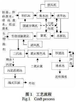 ±¾ÏîÄ¿·ÏË®ÊôÓÚʳƷÄðÔ칤ҵ·ÏË®£¬¾ßÓÐÓлúÎÛȾÎÐü¸¡ÎﺬÁ¿½Ï¸ß£¬¿ÉÉú»¯ÐԽϺõÄÌØµã¡£±¾¹¤³Ì²ÉÓá°Îﻯ+ÑáÑõË®½â£«È±Ñõ£«ÉúÎï½Ó´¥Ñõ»¯·¨+ÍÑÉ«¡±¹¤ÒÕ¶ÔÉú²ú·ÏË®½øÐд¦Àí£¬×Ô2011 Äê08 ÔÂͶ²úÖÁ½ñ£¬´¦ÀíЧ¹ûÎȶ¨£¬¸÷Ïî³öˮָ±ê¾ù¿ÉÒÔ´ïµ½Ïà¹ØµÄÅŷűê×¼¡£