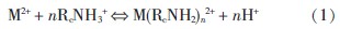 ÓÉͼ2 ¿ÉÒÔ¿´³ö£¬ÔÚÊÔÑ鷶ΧÄÚ£¬ÖؽðÊôÀë×ӵĽØÁôÂÊËæpH ÖµµÄÉý¸ß¶øÉý¸ß¡£pH Öµ¶Ô½ðÊôÀë×Ó½ØÁôÂʵÄÓ°ÏìÖ÷ÒªÔÒòÔÚÓÚÓë¿Ç¾ÛÌÇÂçºÏʱ£¬H+ÓëÖØ½ðÊôÀë×ÓÖ®¼ä´æÔÚ¾ºÕù¹ØÏµ£¬ÅäÌå-NH2¡¢ÖÊ×ÓH ÓëÖØ½ðÊôÀë×ÓM2+Ö®¼ä´æÔÚ»¯Ñ§Æ½ºâ£¬·´Ó¦·½³ÌʽÈçÏ£º