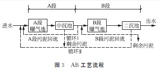 AB工艺是吸附生物降解工艺(如图3所示)的简称,是联邦德国亚琛大学B.Bohnke教授于上世纪70年代中期所发明,80年代初开始应用于工程实践。