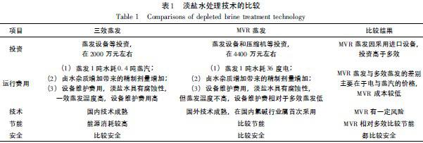 通过比较得出结论,采用MVR技术浓缩淡盐水的成本低于三效蒸发浓缩技术。
