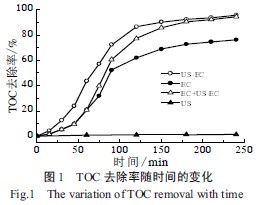 ʽÖУ¬U¡¢I ·Ö±ðΪ½µ½â¹ý³ÌÖÐËùʹÓõĵçѹºÍµçÁ÷£»t Ϊ½µ½â·´Ó¦Ê±¼ä£»p Ϊ³¬ÉùµÄ¹¦ÂÊ£»RTOCΪ·´Ó¦¹ý³ÌÖÐTOC µÄÈ¥³ýÖµ¡£