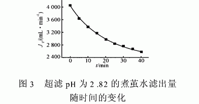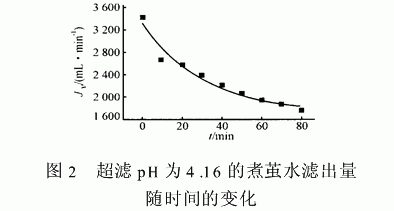 超滤pH为4.16的煮茧水,其滤出量(Jv)随时间的变化见图2。