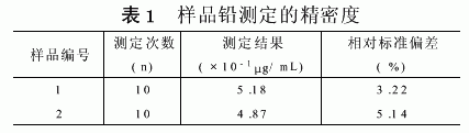 实验表明,铅的检出限为0.006μg/mL,测定结果相对标准偏差小,方法的精密度和准确度较好。