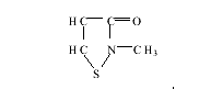 近年来,非氧化性杀菌剂异噻唑啉酮引起人们的重视,它具有广谱、高效、低毒等特点,能够杀死水中的细菌、真菌、藻类,包括粘液膜下的微生物,使用剂量为0.5mg/L即可抑制细菌生长,对环境安全。用昆明种小鼠试验的LD50为2.723g/kg。目前常使用杀生剂为异噻唑啉酮的衍生物,如2-甲基-4-异噻唑啉-3-酮,其结构式如下: