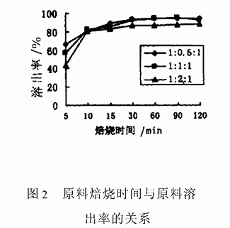 3.1.2 原料配比对焙烧产物溶出率的影响