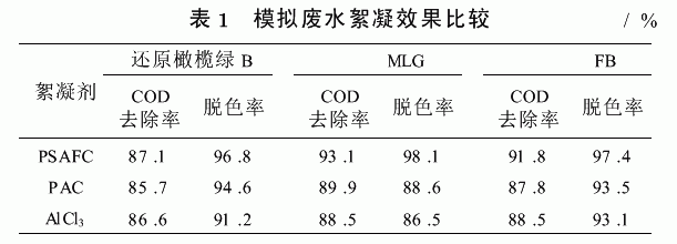 (4)虽有采用工业废物为原料的研究,但工艺复杂,原料利用率低,形成的废渣需要再处理。我们探索了一条新聚硅酸氯化铝铁(PSAFC)生产工艺,进而用该产品处理模拟和实际染色废水,结果脱色和去除COD的效果均好。
