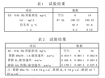 2 水质稳定剂TZ-318(Ⅲ)的性能和试验