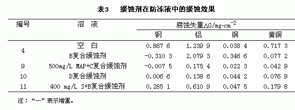 3.3.2 缓蚀剂在防冻液中的缓蚀效果