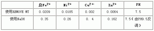 综合分析使用REMOVE MT处理废水,处理费用应该是较常规加碱处理方式有所降低。处理水完全满足国家标准排放要求。