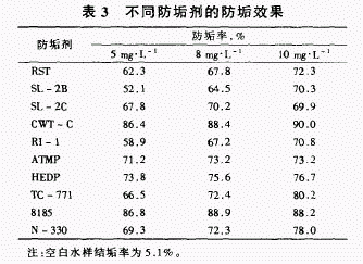 从表3可看出,防垢剂CWT—C与8l85的防垢效果较好。