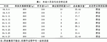本站9月份污水分析记录见表1。