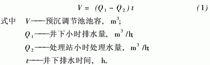 矿井排水处理预沉调节池的池容一般可按下式计算,即: