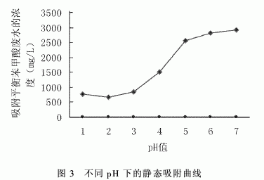 2.3.3 废水pH值对树脂静态吸附效果的影响
