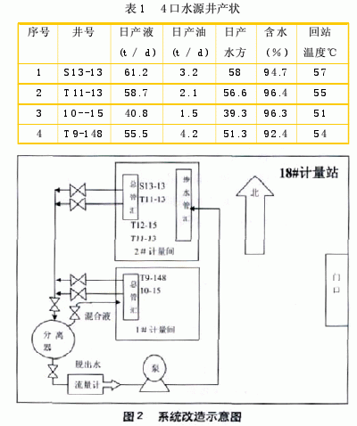 2)计量站脱水回掺系统利用本站高温油井产出液,热损失较少,有效地降低了掺水井回压。