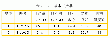 2008年12月江河油田18#计量站脱水回掺系统投入使用,使用后掺水工艺技术参数:掺水压力2.0MPa,排量2.1方/小时,掺水温度54℃,脱出污水含油145mg/L,掺水井T12-15、T11-13生产运行平稳(表2)。