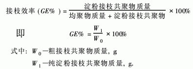 已接枝到淀粉上的接枝聚合物占总的聚合物的百分率称为接枝效率,简称为GE。接枝效率按下式计算: