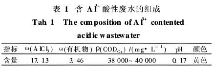 含Al3+酸性废水由某医药中间体生产企业提供,其组成见表1。