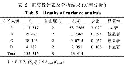 为进一步了解各个因素对絮凝效果的具体影响,对实验结果进行方差分析,结果示于表5。