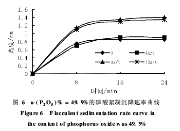 2)不同浓度的磷酸,即使加入同样量的絮凝剂,其沉降速度也是不同的,絮凝剂的用量与磷矿的品位、磷酸的浓度及固体含量有关。