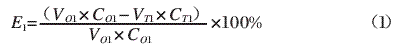 式中:E1为萃取率,VO1和CO1分别为给液相初始体积和有机酸浓度,VT1和CT1分别为特定时间给液相的体积和有机酸浓度,其中VO1≈VT1。