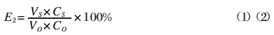 式中:E2为提取率,VO和CO分别为实验开始时给液相的体积和有机酸浓度,VS和CS分别为实验结束时反萃相的体积和有机酸浓度。