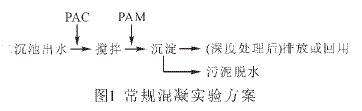 絮凝沉降法的关键问题之一是絮凝剂的选择。聚合氯化铝(PAC),又名碱式氯化铝,其化学式一般表示为[Al2(OH)nCl6-n]m,是新一代无机高分子混凝剂。与常规的铝盐、铁盐混凝剂相比,它的投加量更低,而混凝效果更好,适用范围更广,沉渣量也更小。常规絮凝沉淀法是在加入絮凝剂后,进行固液分离达到污染物的去除。然而,在工厂实际操作过程中,絮凝剂的加入量往往高于理论值,这样就造成了絮凝剂的浪费。本文提出一种新的混凝用法--梯级混凝,较大程度上降低了絮凝剂的用量,提高了混凝去除效率,为后续的深度处理降低了负荷。