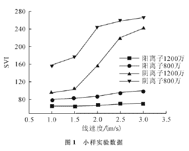 将PAM絮凝剂配成0.1%浓度的溶液备用。取200mL污泥,加入絮凝剂至获得良好的絮凝效果,留作对比样,观察并记录絮凝体大小、絮凝剂用量;将物料在高速下搅拌,转速分为5档:400、600、800、1 000、1 200r/min,分别对应线速度为1.0、1.5、2.0、2.5、3.0m/s,加入絮凝剂絮凝,搅拌10s后倒入量筒,测定污泥沉降比(SV),计算污泥指数(SVI)。