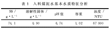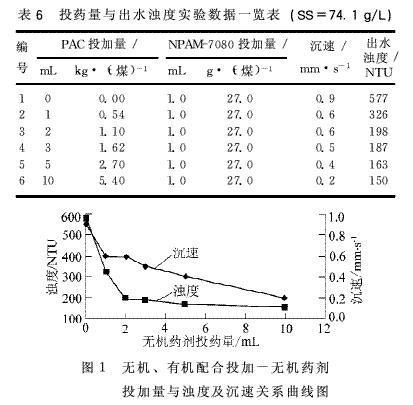 煤泥水浓度SS=74.1g/L,试验结果见表6及如图1所示。