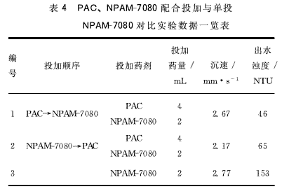 4.1 凝聚剂PAC与NPAM-7080配合投加实验