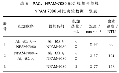 确定有机、无机药剂投加顺序和适用条件,同时与单投NPAM-7080时处理的效果进行对比。