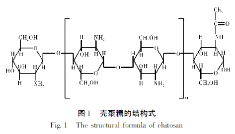 壳聚糖是一种白色、略带珍珠光泽、半透明的片状或粉状固体,无臭无毒。它是甲壳素脱去55%以上N-乙酰基后的产物,相对分子质量从数十万至数百万不等。其结构式见图1。
