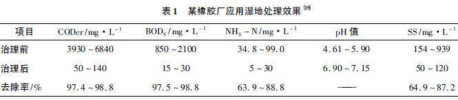 在过去的几十年,人工湿地因其具备的经济价值和去除效果显著,而被广泛应用于各种污水的处理。人工湿地系统自1974年在德国首次工程应用以来,已逐渐应用于生活废水、工业废水、农业径流、养殖污水、污染河水、公路径流、二级处理厂等各类污水的处理及生态修复中。在进水浓度较低的情况下,人工湿地对污水中BOD的去除率可达85%~95%,COD去除率可达80%以上,出水BOD浓度可达10mg/L左右,SS浓度低于20mg/L。表1是某橡胶厂应用人工湿地系统处理废水后,进水出水水质指标。人工湿地系统可以以较低的运行费用,把废水中的污染降低到很低的浓度,满足如今越来越严格的废水排放指标要求。