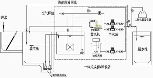 (3)考虑膜元件的在线化学清洗,应在抽吸管路上设置化学清洗药液注入口,此注入口到反应器液面的垂直距离应为600~1000mm。