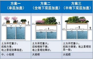 举一个例子,全地下的MBR竖向设置我们做三层,地下负,地下二层,一般是负15米以上,我们做一些预处理池体,生物池,负一层是设备层,地下通道都在地下一层、地上层,负2米,上面可以种树,种灌木,有2米的浮土。